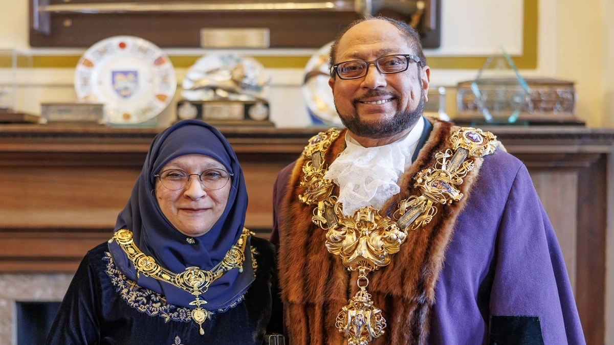 Mohammed Asaduzzaman, nato in Bangladesh, già primo Sindaco musulmano di Brighton and Hove, nella Contea cerimoniale dell’East Sussex, Inghilterra, con la moglie Most Jasmin Ara